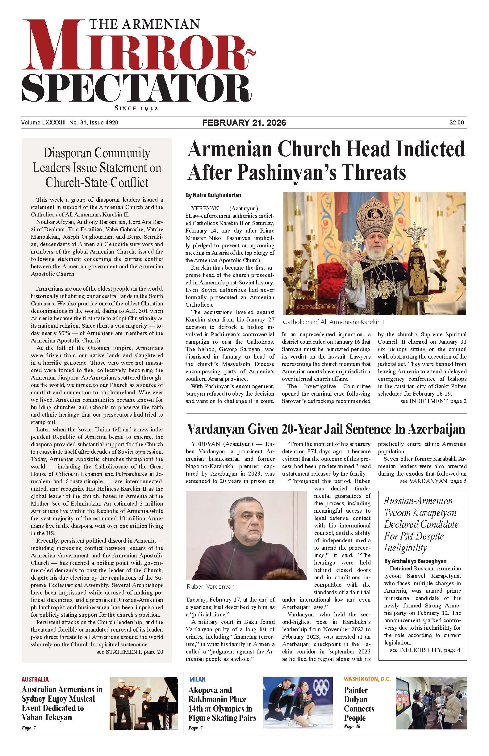- Armenian Church Head Indicted After Pashinyan’s Threats