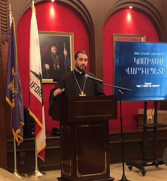 BURBANK, Calif. — On November 20, a commemorative evening dedicated to Komitas Vardapet took place organized by the Zvartnots Cultural Committee of the Western Diocese of the Armenian Apostolic Church of North America. Despite the extremely unfavorable weather conditions, Hampar Hall of the Diocese was nearly full.