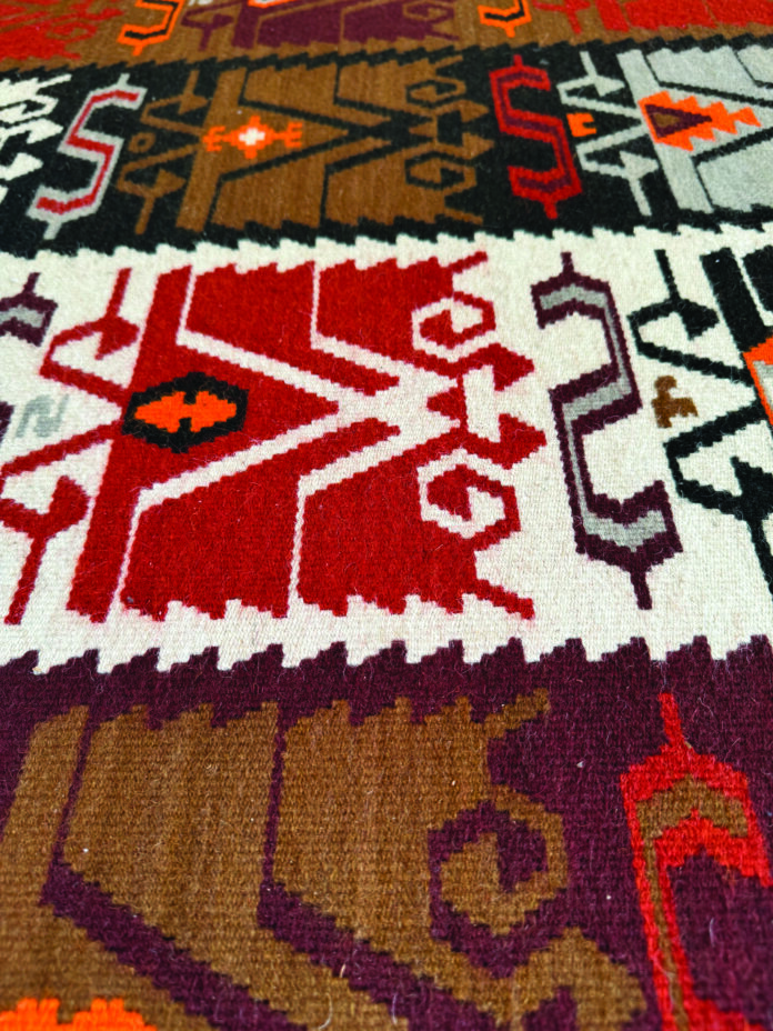 Mirzoyan’s rug is the latest incarnation of an ancestral flat-woven Dragon rug, a treasure rescued from the ashes of the Armenian Genocide and brought to present-day Armenia in the early 1920s.