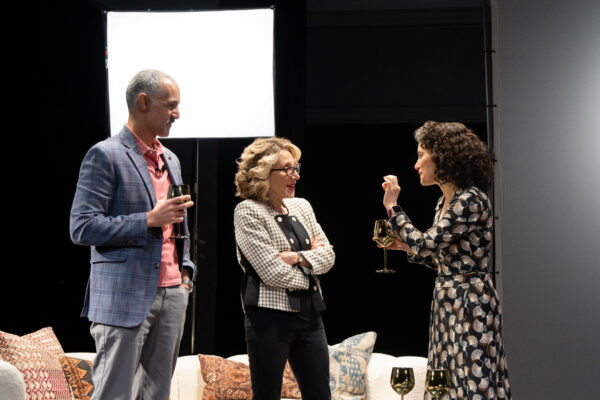 Act II jumps to 2024, on the set of a Christmas episode of a new Netflix series hosted by “the most famous woman in the world,” as historical drama gives way to sharp contemporary satire. Armenians in America have prospered, represented here by Nardek Vartoumian (Barsoumian), a university professor convinced he was denied tenure because he wasn’t Muslim; Rose Sarkisian (Martin), a wealthy Calabasas boomer doyenne; and Leslie Malconian (Susan Pourfar), a politically correct housewife campaigning to add “Armenian” as a category in the 2020 Census; and city councilman Robert Zakian (Nacer).