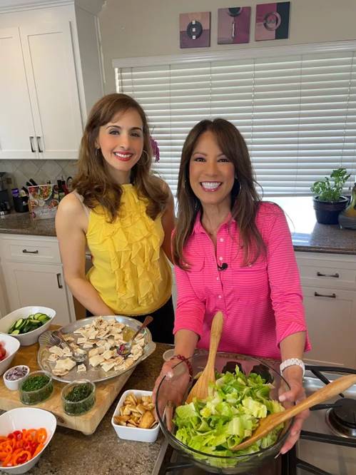 “Since April was officially recognized as Arab American Heritage Month, Arab Americans were flooding social media with their favorite family recipes, from overfilled shawarma wraps and crispy falafel, to artistic hummus plates and buttery baklava. I was excited to be featured on NBC’s ‘California Live’ recently to share one of my own favorite recipes for fattoush salad. I chose fattoush because of the harmonious flavors and textures of sweet and tangy, earthy and crunchy. No wonder this dish has reached popularity worldwide,” she says.