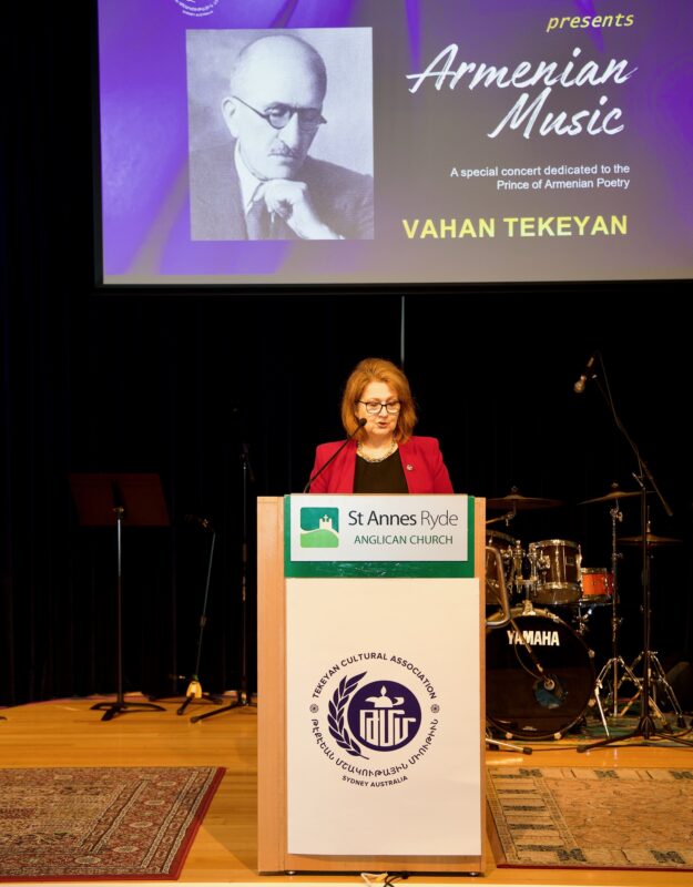 RYDE, Australia — The Armenian community of Sydney was treated to a truly memorable evening of music and culture at St Annes Auditorium, Ryde, on Sunday, February 8. Organized by the Tekeyan Cultural Association (TCA) of Sydney, the special event of music and conversation was dedicated to the Prince of Armenian Poetry, Vahan Tekeyan.