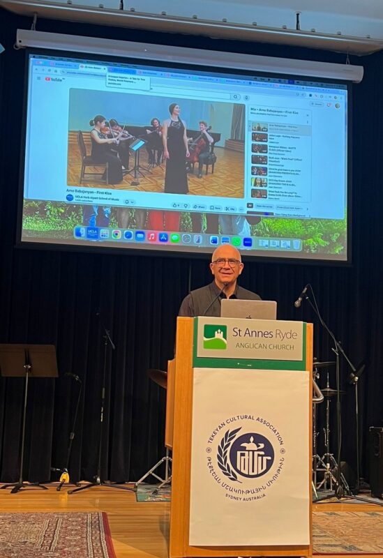 The program featured internationally acclaimed violinist and University of California, Los Angeles (UCLA) Professor Movses Pogossian, alongside renowned Australian pianist Vatche Jambazian. Together, they delivered an inspiring performance honoring the cultural contributions of Vahan Tekeyan through music and reflection.